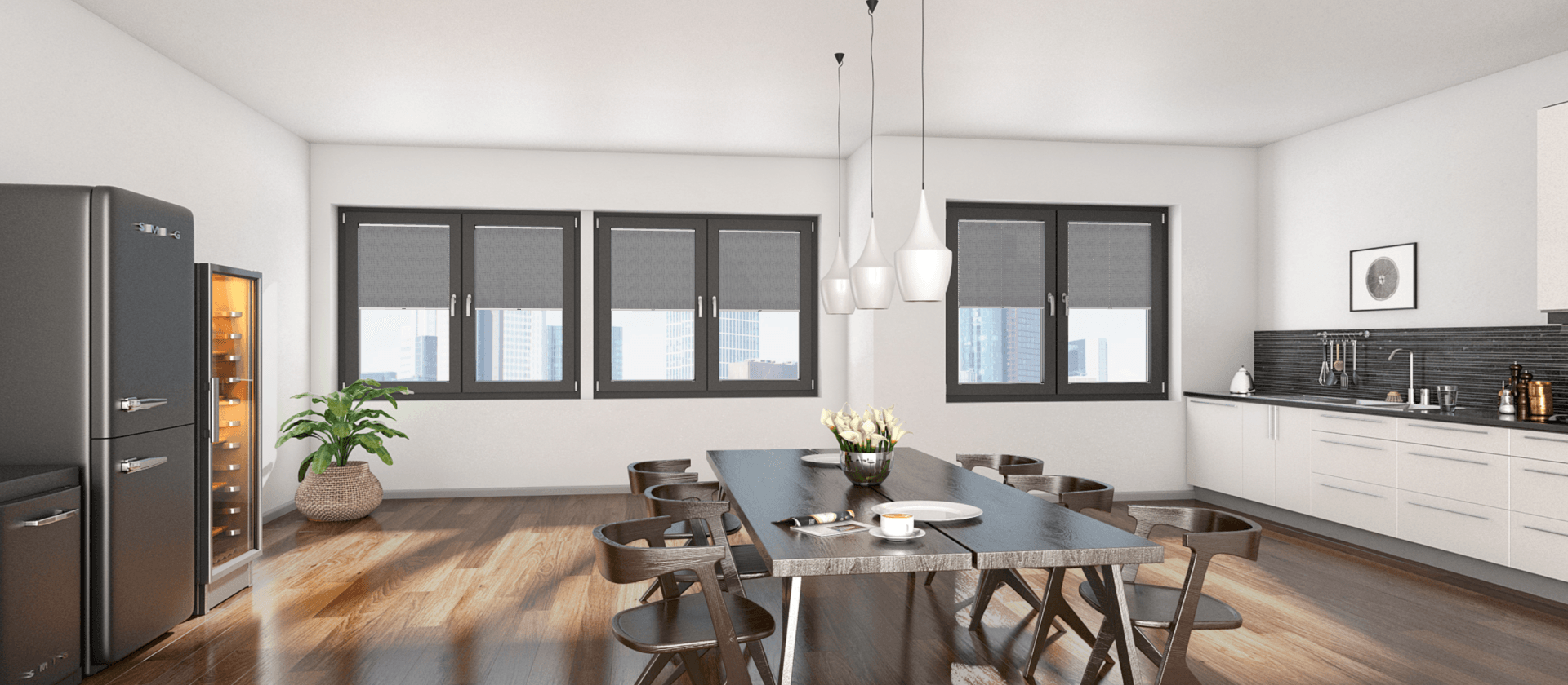 - Über die sich links befindenden Regler im virtuellen Raum können Sie die Behänge öffnen und schließen bzw. hoch und runter fahren und so die Anlage in den verschiedensten Positionen betrachten.